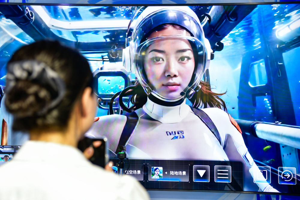 8月28日,參會人員在數博會上體驗AI+元宇宙空間。
