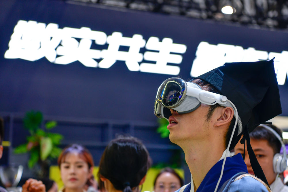 8月28日,參觀者在數博會上體驗AVP空間觀賽。