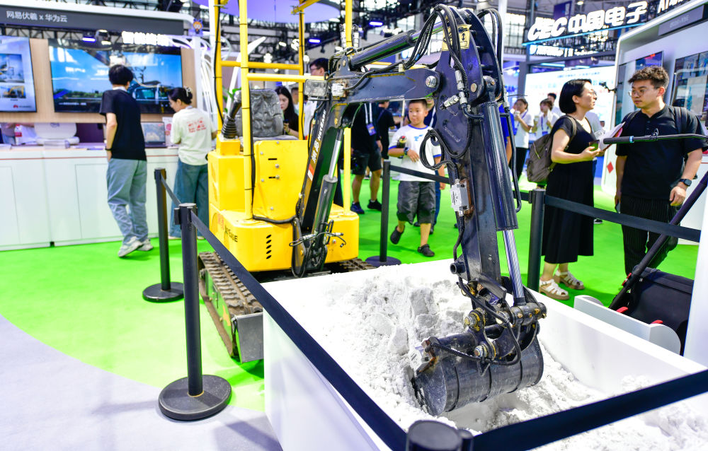 8月28日拍攝的在數博會上展出的一款智能機械設備。