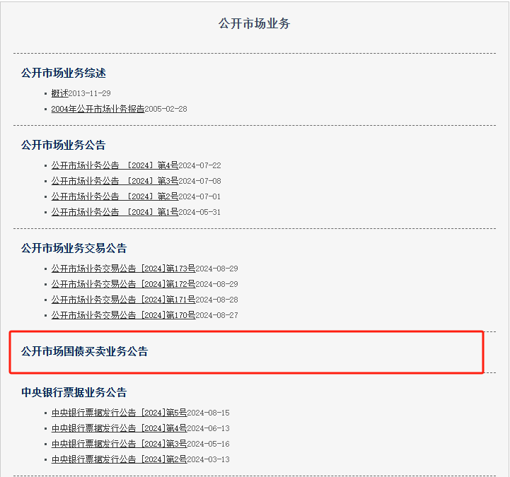 8月28日,中國人民銀行官網“公開市場業(yè)務”專題頁面上線“公開市場國債買賣業(yè)務公告”欄目。此次在官網欄目更新,顯示央行已為公開市場國債買賣業(yè)務做好準備,再次釋放其將在公開市場開展國債買賣操作的信號。