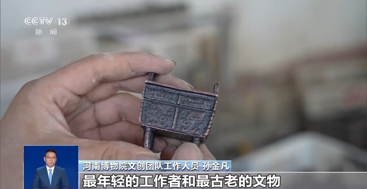 河南博物院文創(chuàng)團(tuán)隊(duì)工作人員 孫金凡:做成的時候感覺很有成就感,最年輕的工作者和最古老的文物,我覺得我這對CP組得還真的挺不錯的。