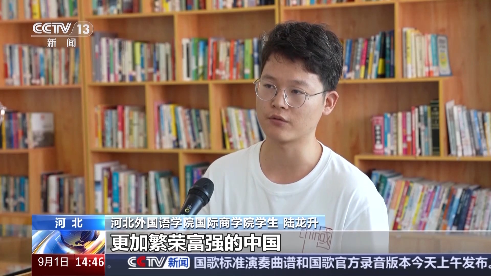 河北外國語學(xué)院國際商學(xué)院學(xué)生 陸龍升:我想通過自己的努力,以后可以讓更多的外國人看到真實(shí)的中國,更加繁榮富強(qiáng)的中國。