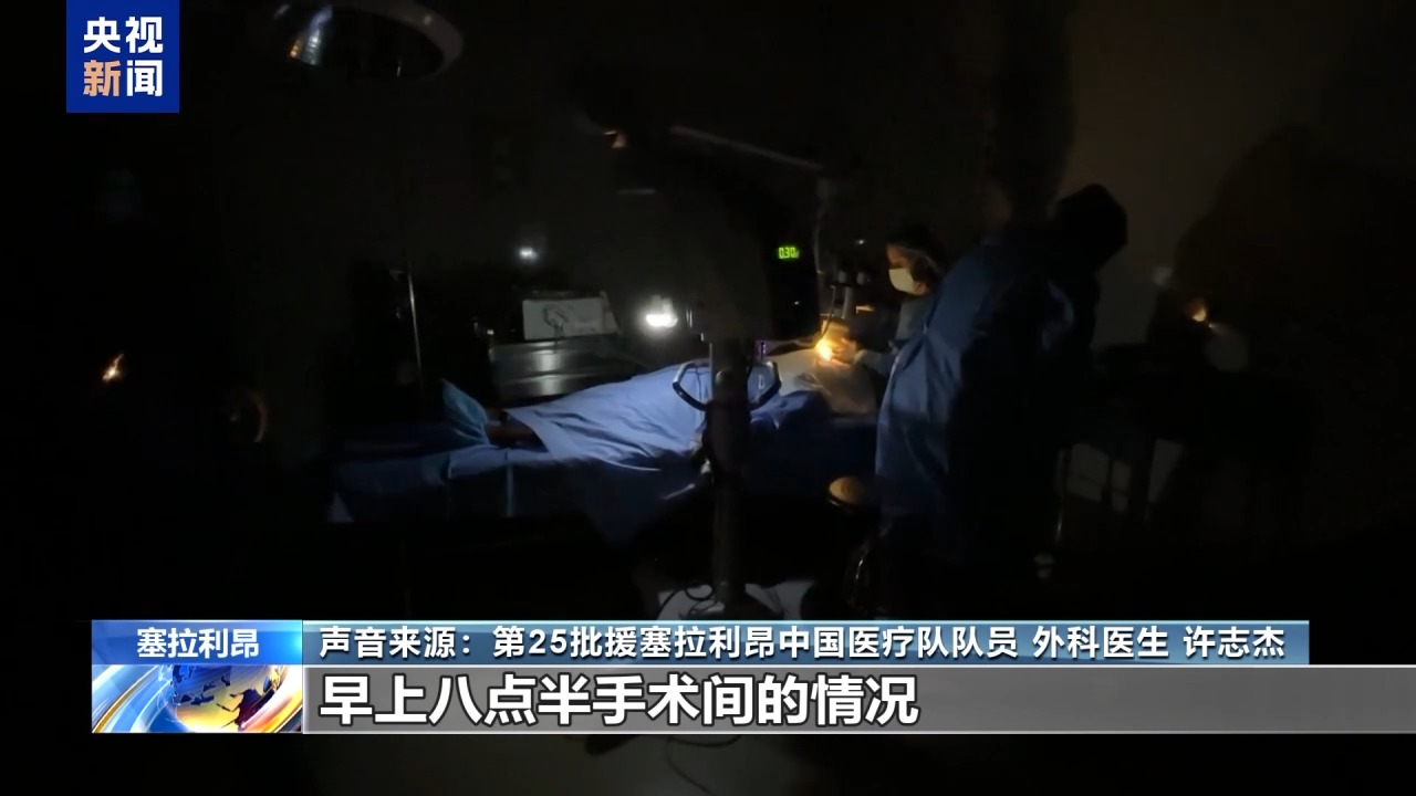 第25批援塞拉利昂中國醫(yī)療隊隊員 外科醫(yī)生 許志杰:做眼科手術(shù)第二臺,(患者)還沒打麻醉,突然停電了,大家就打著手機光,用著應急電源在做手術(shù)。