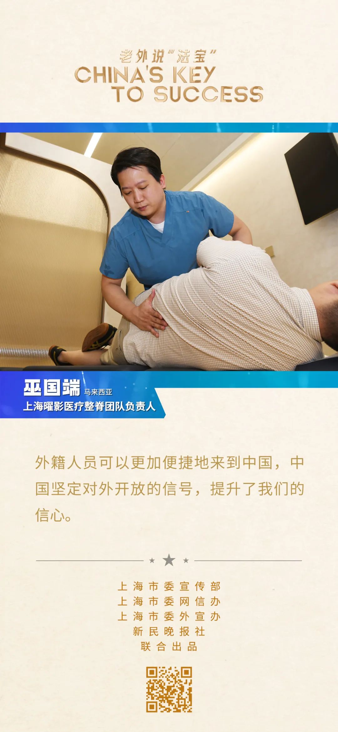 馬來西亞人巫國端是上海曜影醫(yī)療整脊團隊負責人。2014年,他只身來到上海從事醫(yī)療工作,今年是他在這座城市的第十個年頭。