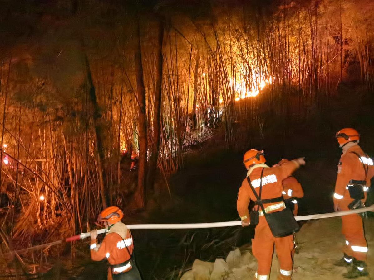 今年3月21日,甘南州夏河達(dá)麥鄉(xiāng)發(fā)生森林大火,大隊(duì)接總隊(duì)命令后迅速出動近百名指戰(zhàn)員奔赴火場。
