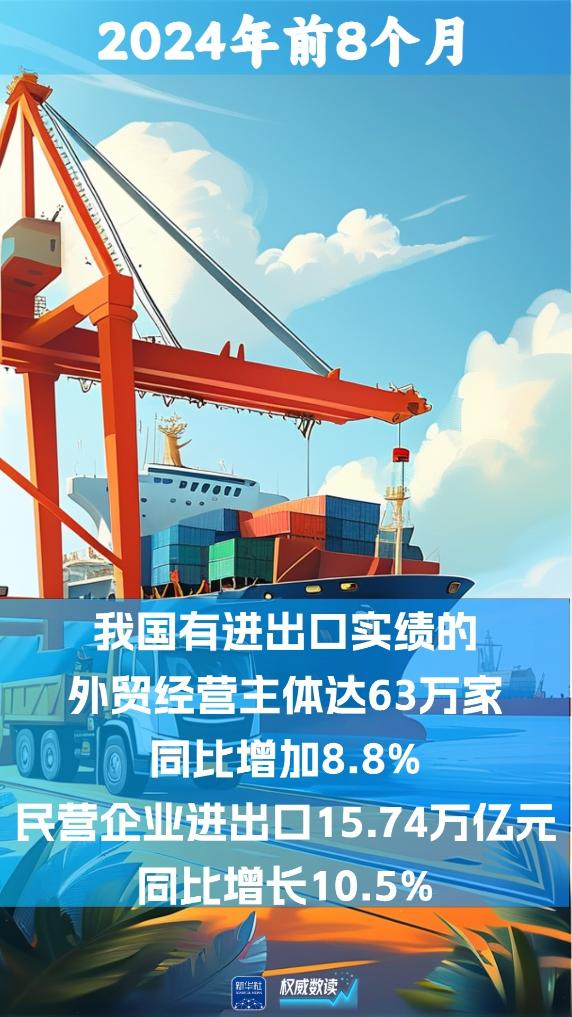 我國外貿(mào)經(jīng)營主體持續(xù)活躍,前8個月有進出口實績的外貿(mào)經(jīng)營主體達(dá)63萬家,同比增加8.8%。其中,外貿(mào)主力軍民營企業(yè)進出口15.74萬億元。