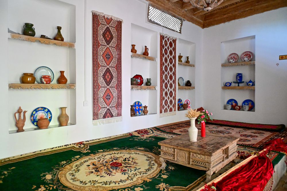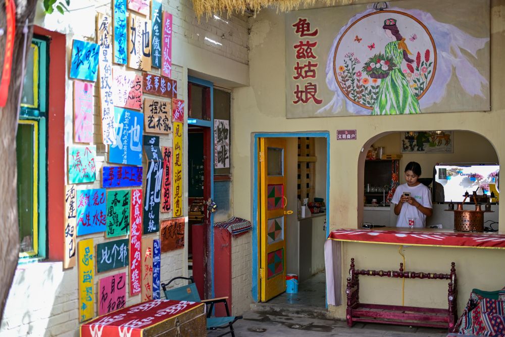 來(lái)到龜茲小巷,各式各樣、色彩明艷的木門總能讓游人目光停駐,推門入院又是另一番風(fēng)景。走進(jìn)“爺爺?shù)募摇甭糜渭以L院,傳統(tǒng)古建筑氣息迎面而來(lái),這座有上百年歷史的民居融和了多民族建筑藝術(shù)特點(diǎn),門窗設(shè)計(jì)、前檐廊木結(jié)構(gòu)等與我國(guó)傳統(tǒng)木構(gòu)建筑一脈相承。