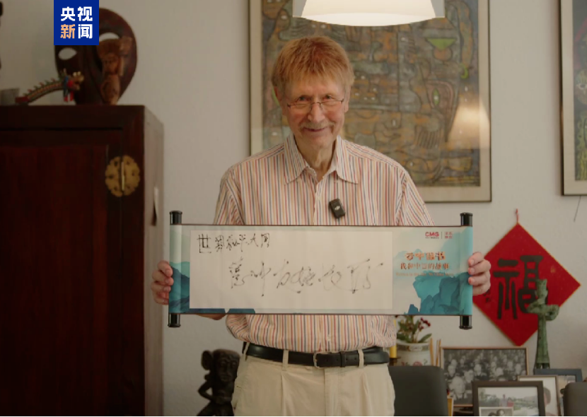 △托馬斯·海貝勒寫(xiě)下:“世界和平大同,德中友好長(zhǎng)存。”