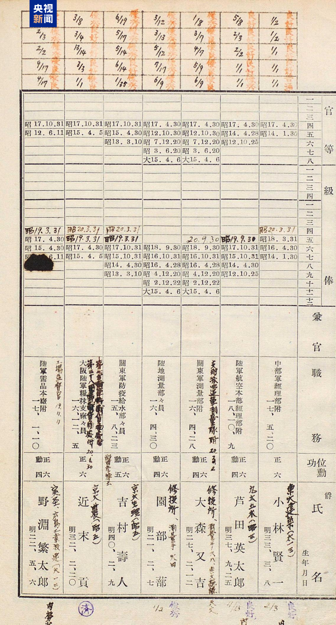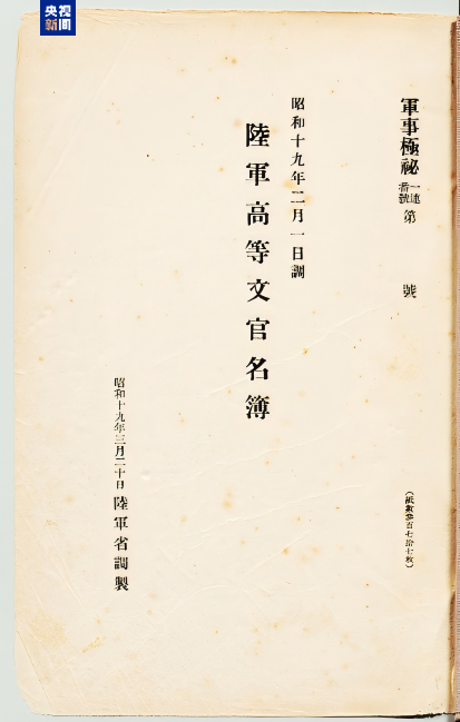侵華日軍第七三一部隊(duì)罪證陳列館與日本學(xué)者松野誠(chéng)也聯(lián)合發(fā)布了一份最新發(fā)現(xiàn)的史料文獻(xiàn)《陸軍高等文官名簿 陸軍書記官 陸軍技師》。