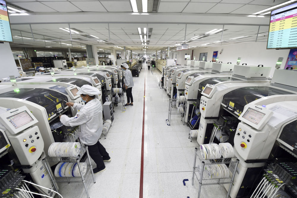 工人在位于安徽合肥的聯(lián)寶(合肥)電子科技有限公司生產(chǎn)車間內(nèi)忙碌(2020年3月5日攝)。新華社記者 周牧 攝