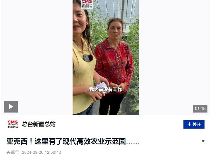 阿依謝姆古麗,在新疆喀什地區(qū)疏勒縣的山東省援疆項(xiàng)目“蔬樂”現(xiàn)代高效農(nóng)業(yè)示范園,從事西瓜種植工作已經(jīng)兩年了?!白鳛檗r(nóng)民的她,之前沒有收入?!闭劦竭@份工作,阿依謝姆古麗激動得熱淚盈眶。