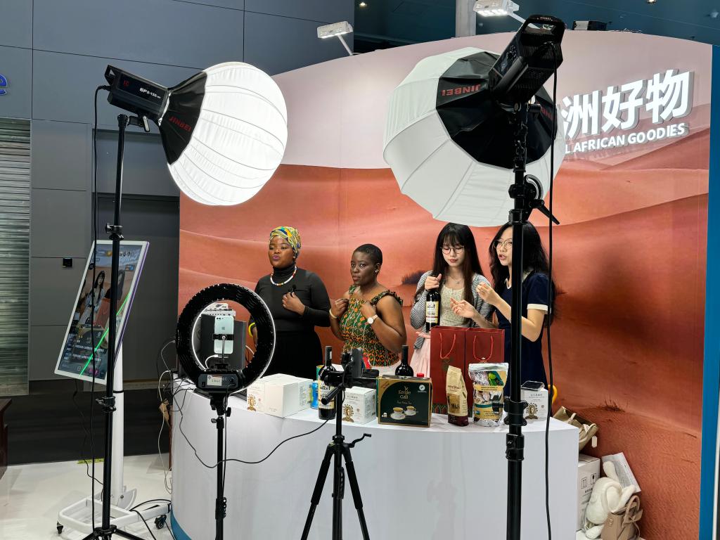 南非的紅酒、埃塞俄比亞的咖啡、肯尼亞的紅茶……在“智慧非洲”展臺一角,來自南非和中國的4名大學生變身帶貨主播,通過TikTok和抖音平臺將各類“非洲好物”推廣至海內(nèi)外。
