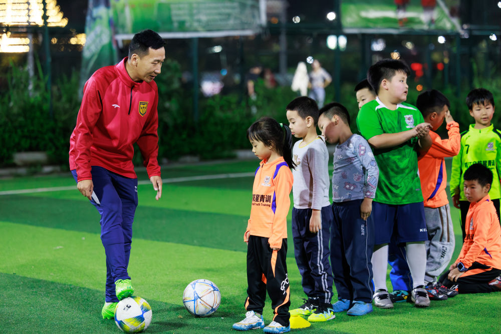 4月8日,董永恒(左一)在對榕江縣的小球員進行培訓(xùn)。新華社記者 劉續(xù) 攝