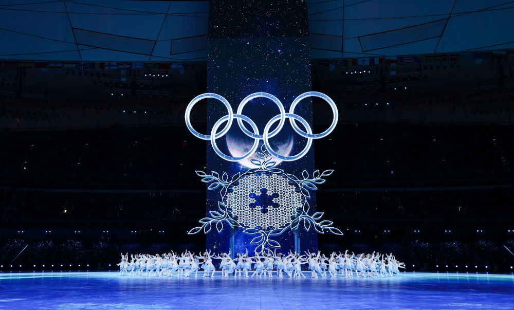這是2022年2月4日晚在北京國家體育場舉行的第二十四屆冬季奧林匹克運動會開幕式上的“構(gòu)建一朵雪花”環(huán)節(jié)。新華社記者 曹燦 攝