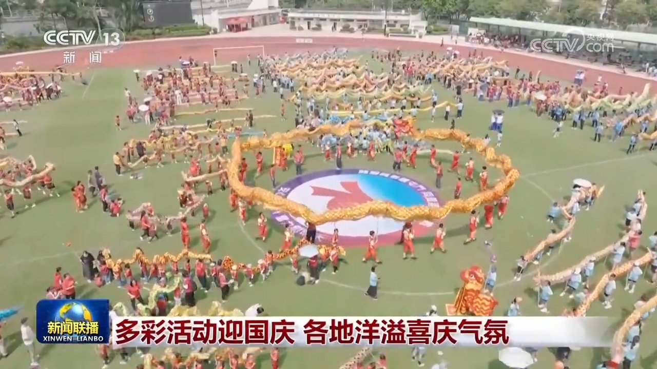 連日來,香港舉行多場活動慶祝國慶。在新界屯門舉行的活動中,近80所學校的師生們舞動75只醒獅和180余條彩龍,展現(xiàn)愛國、愛港精神。在維多利亞港海濱舉行了千人大合唱活動。