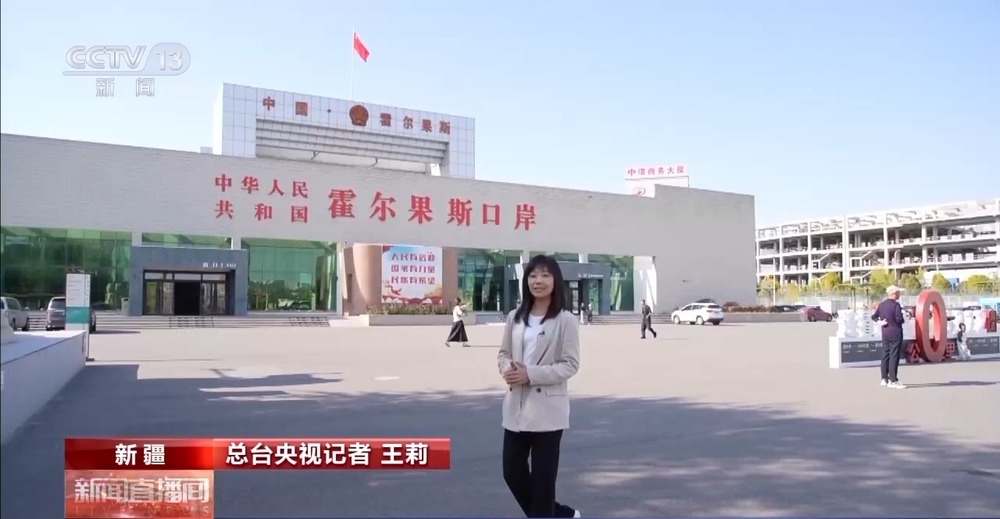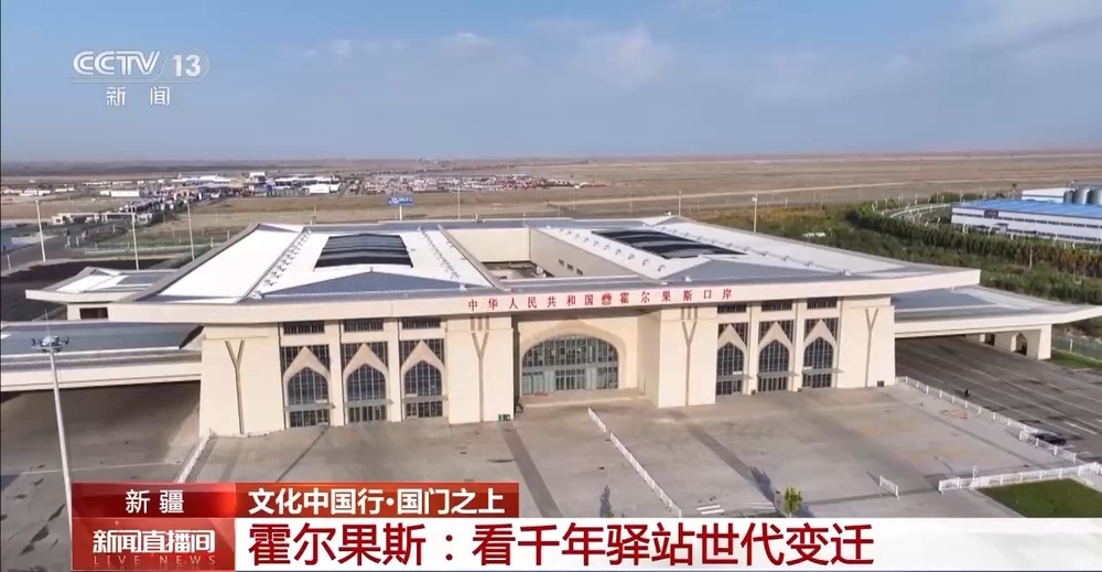 總臺(tái)央視記者 王莉:這里是位于新疆伊犁哈薩克自治州的霍爾果斯公路口岸,這座巍峨雄偉的建筑就是霍爾果斯第六代國(guó)門,這里與哈薩克斯坦隔河相望,是中國(guó)向西開放的重要窗口和連接亞歐大陸的“黃金口岸”。千年以前,霍爾果斯就是古絲綢之路上的重要驛站,一百多年前,霍爾果斯公路口岸正式通關(guān),從20世紀(jì)50年代的第一代國(guó)門,到如今的第六代國(guó)門,國(guó)門的變遷,見(jiàn)證著霍爾果斯的這座邊境城市的蓬勃發(fā)展。
