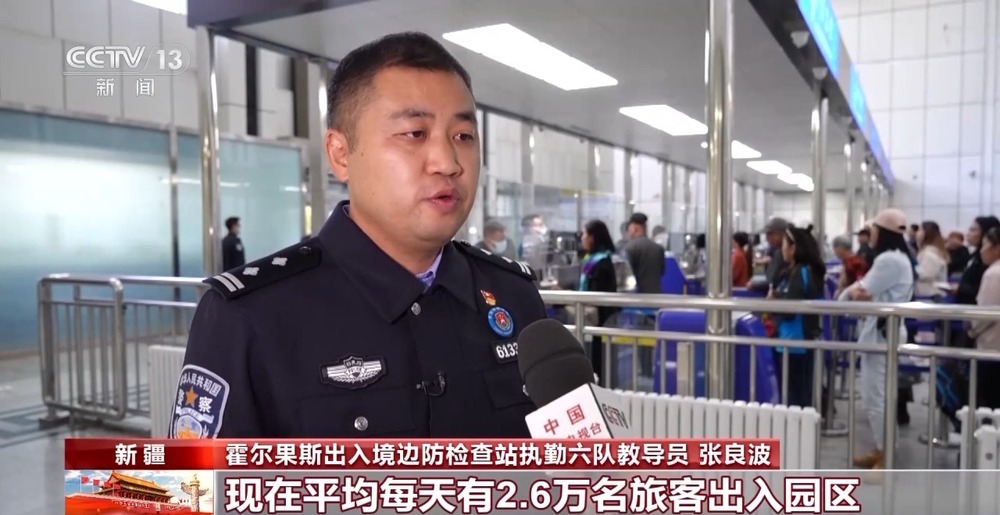 霍爾果斯出入境邊防檢查站執(zhí)勤六隊(duì)教導(dǎo)員 張良波:現(xiàn)在平均每天有2.6萬(wàn)名旅客出入園區(qū),為最大限度保障旅客高效快速通關(guān),我們采取錯(cuò)時(shí)通關(guān)模式。我們也會(huì)根據(jù)旅客的流量情況,動(dòng)態(tài)調(diào)整我們的人工查驗(yàn)通道,最高可以加開到12條。
