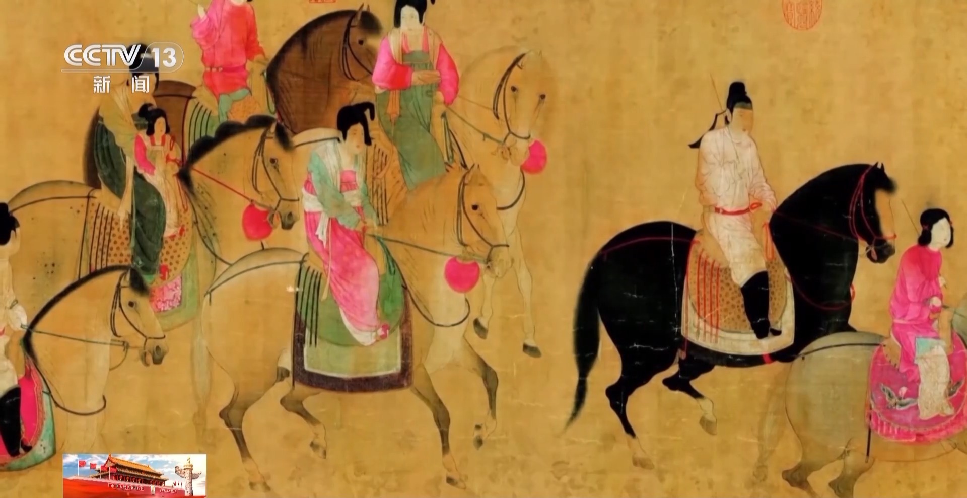 2019年,遼博辦了一場(chǎng)創(chuàng)新的展覽:“又見(jiàn)大唐”,用100件珍貴文物再現(xiàn)盛世大唐的神致氣韻,果斷地放棄了按朝代展珍品的常用方式,各個(gè)朝代只要反映大唐主題的文物都可以用。上圖這幅《虢國(guó)夫人游春圖》雖然是宋朝摹本,但畫的是大唐盛世的輝煌繁華。