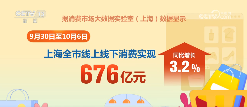 消費市場大數據實驗室(上海)數據顯示,9月30日至10月6日,上海全市線上線下消費實現676億元,同比增長3.2%。36個重點商圈進店線下客流總量達到3449萬人次,同比增長9.8%,25個商圈客流實現增長。消費新場景的開業(yè)亮相為節(jié)日市場打造新動力,徐匯區(qū)的西岸夢中心聯(lián)動首屆上海國際光影節(jié)徐匯分會場,以多家濱水首店新開、多元商旅文體展融合活動吸引廣大客流;浦東新區(qū)的前灘公園巷開街,與周邊的商場和公園共同形成“商場+街區(qū)+濱江公園”的商業(yè)形態(tài),吸引客流8.7萬人次。