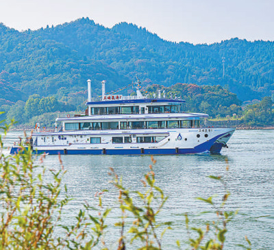 長江上的第一艘氫燃料電池動力船“三峽氫舟1”號在航行。據(jù)測算,“三峽氫舟1”號相比傳統(tǒng)燃油動力船舶,每年可減少二氧化碳排放343.67噸。新華社記者 肖藝九攝