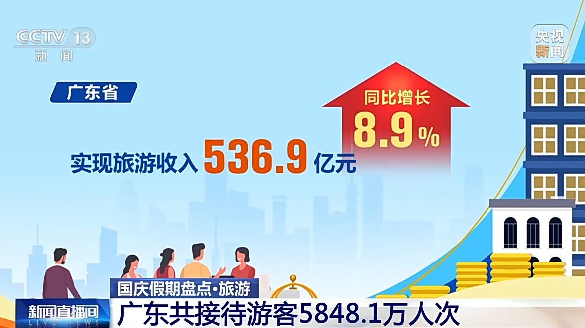 廣東省10月1日至7日累計(jì)接待游客5848.1萬(wàn)人次,按可比口徑同比增長(zhǎng)6.2%;實(shí)現(xiàn)旅游收入536.9億元,同比增長(zhǎng)8.9%。古驛道沿線(xiàn)重點(diǎn)區(qū)域、紅色旅游經(jīng)典景區(qū)、鄉(xiāng)村旅游點(diǎn)和歷史古村落等,成為旅游出行熱點(diǎn)。
