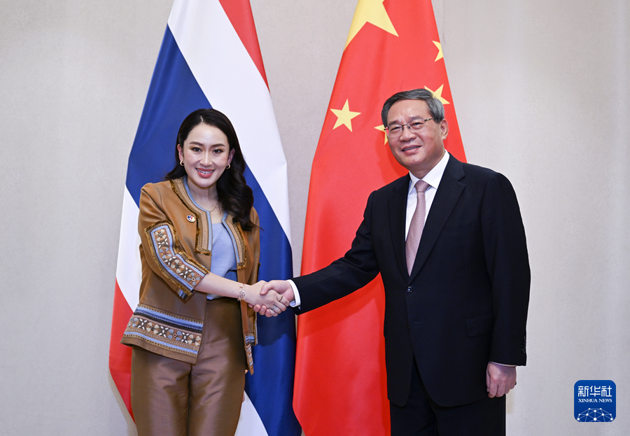 當(dāng)?shù)貢r間10月10日,國務(wù)院總理李強在萬象出席東亞合作領(lǐng)導(dǎo)人系列會議期間會見泰國總理佩通坦。新華社記者 張領(lǐng) 攝
