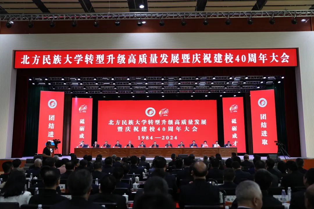 李邑飛代表寧夏回族自治區(qū)黨委、人大、政府、政協(xié),向北方民族大學(xué)和全體師生員工表示祝賀。他說(shuō),40年來(lái),北方民族大學(xué)始終堅(jiān)持社會(huì)主義辦學(xué)方向,與黨的民族工作同頻共振、與寧夏改革發(fā)展同行同向,在理論研究、人才培養(yǎng)、科技創(chuàng)新等方面邁出堅(jiān)實(shí)步伐,美麗新寧夏的壯美畫卷上有你們的精彩一筆。黨的十八大以來(lái)習(xí)近平總書(shū)記3次考察寧夏,賦予寧夏建設(shè)黃河流域生態(tài)保護(hù)和高質(zhì)量發(fā)展先行區(qū)、努力創(chuàng)建鑄牢中華民族共同體意識(shí)示范區(qū)的使命任務(wù)。真誠(chéng)希望北方民族大學(xué)主動(dòng)融入先行區(qū)建設(shè),在教育、科技、人才“三位一體”戰(zhàn)略布局中精準(zhǔn)定位,構(gòu)建更加完善的產(chǎn)教融合、校企合作、協(xié)同育人機(jī)制,多育優(yōu)秀人才、多出科研成果,在推動(dòng)寧夏高質(zhì)量發(fā)展中展現(xiàn)新?lián)?dāng)。真誠(chéng)希望北方民族大學(xué)積極投身民族團(tuán)結(jié)進(jìn)步事業(yè),堅(jiān)定走好鑄牢中華民族共同體意識(shí)“第一方陣”,構(gòu)建鑄牢中華民族共同體意識(shí)工作教育體系,加強(qiáng)黨的民族工作理論政策宣傳闡釋,為有形有感有效創(chuàng)建示范區(qū)貢獻(xiàn)力量。真誠(chéng)希望北方民族大學(xué)根植寧夏、立足西北、面向全國(guó),吸引和培養(yǎng)更多素質(zhì)過(guò)硬、業(yè)務(wù)精湛的師資力量,讓更多青年學(xué)子成長(zhǎng)成才、留在寧夏、建設(shè)寧夏。自治區(qū)黨委和政府將一如既往全力支持學(xué)校改革建設(shè)發(fā)展,把北方民族大學(xué)辦得更好更出彩,為加快建設(shè)美麗新寧夏、奮力譜寫中國(guó)式現(xiàn)代化寧夏篇章,為強(qiáng)國(guó)建設(shè)、民族復(fù)興作出新的更大貢獻(xiàn)。