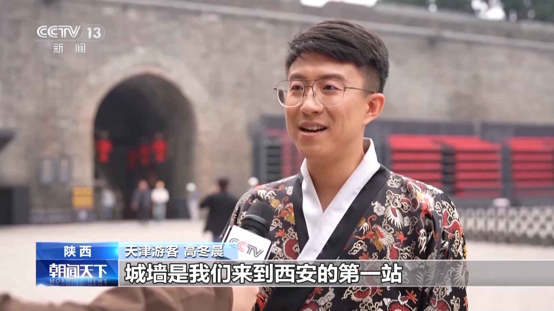 天津游客 高冬晨:城墻是我們來到西安的第一站,來了之后第一個感覺就是這里非常雄偉,非常震撼,而且非常有文化底蘊(yùn)。