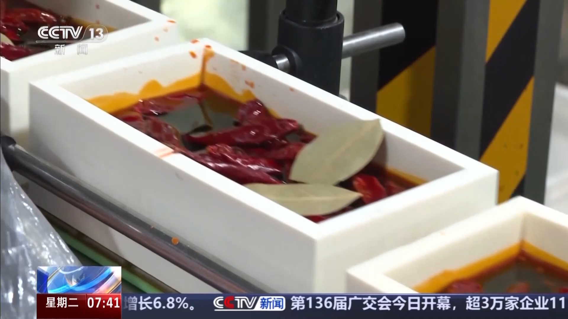 重慶合川,集聚了350多個火鍋食材企業(yè)。當(dāng)記者來到其中一家的時候,一批干辣椒剛剛被送上生產(chǎn)線。就是這樣一個簡單的篩選環(huán)節(jié),也用上了X光機這樣的數(shù)字化裝備。