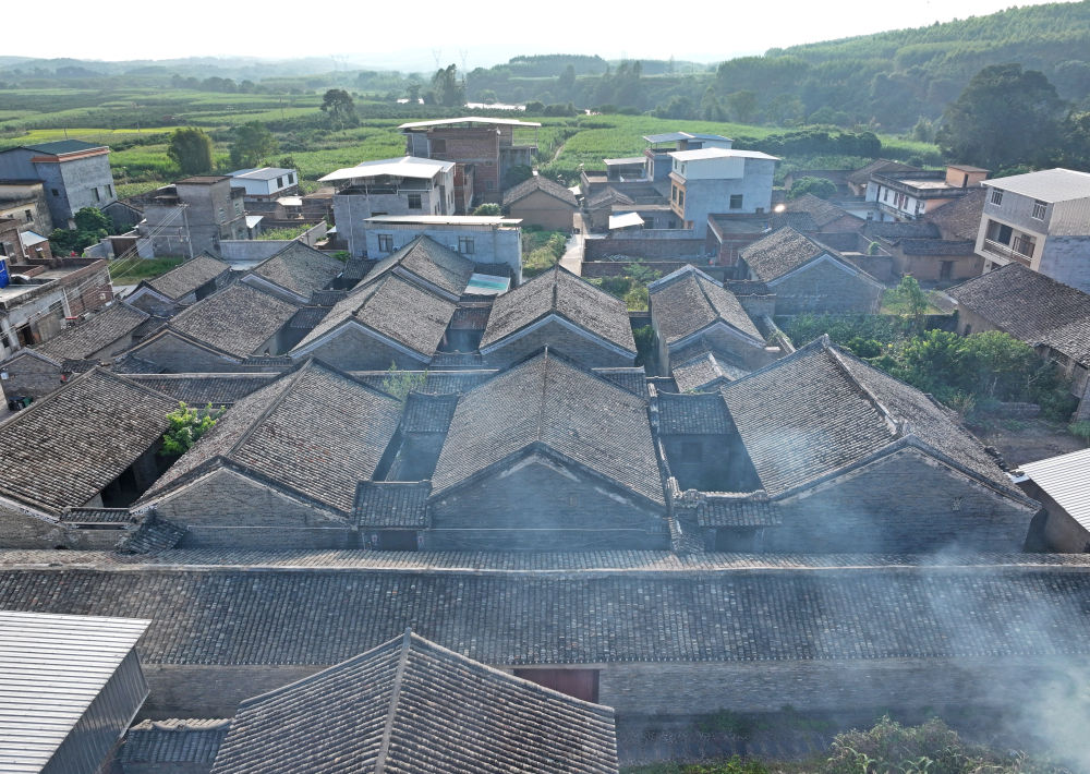 這是炊煙升騰的廣西來(lái)賓市象州羅秀鎮(zhèn)納祿村(10月9日攝,無(wú)人機(jī)照片)。
