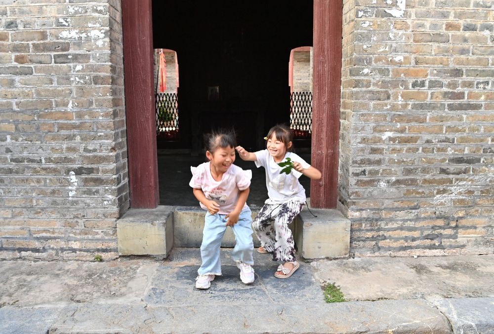 兩名孩子在廣西來(lái)賓市象州羅秀鎮(zhèn)納祿村的古宅里玩耍(10月10日攝)。