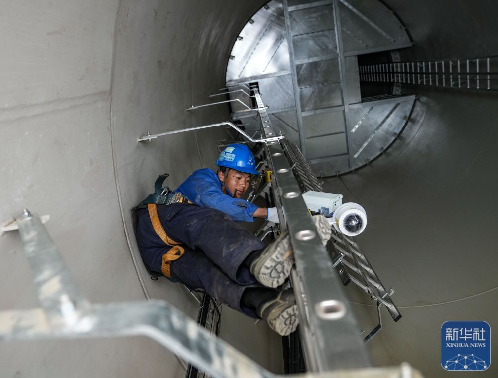10月17日,工作人員在檢修風(fēng)機內(nèi)部的監(jiān)控設(shè)備。