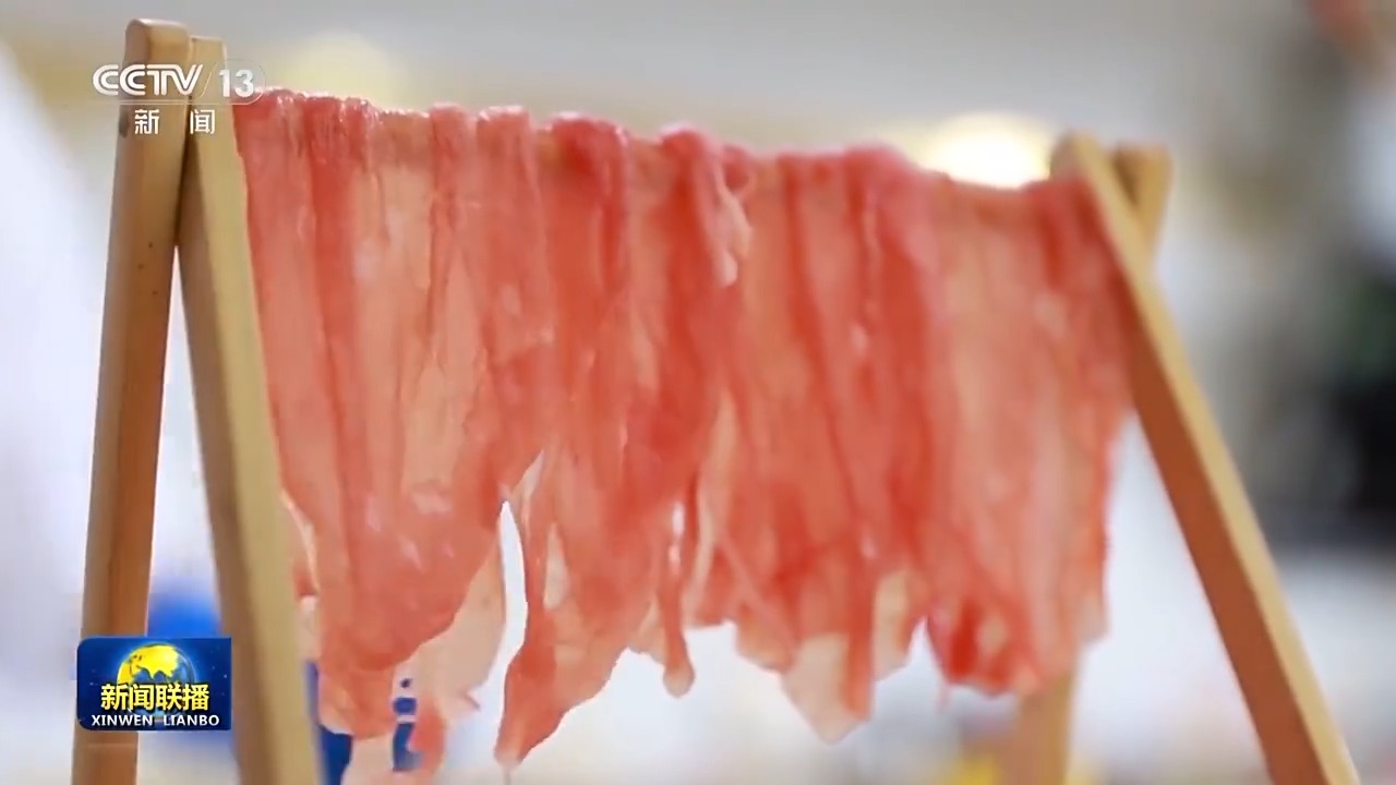 隨后的生產(chǎn)環(huán)節(jié),數(shù)字化技術(shù)更是隨處可見。一顆小小的干辣椒,要經(jīng)過X光等五級智能篩選,才能送上生產(chǎn)線;全封閉的反應(yīng)釜替代了傳統(tǒng)炒鍋,技術(shù)員把配方信息輸入系統(tǒng)后,設(shè)備會自動配料加工生產(chǎn),工作效率提升了10倍;1分鐘左右,一塊冷鮮肉就被切割成近百塊幾毫米的薄片,智能化檢測環(huán)節(jié),結(jié)果精確到小數(shù)點。