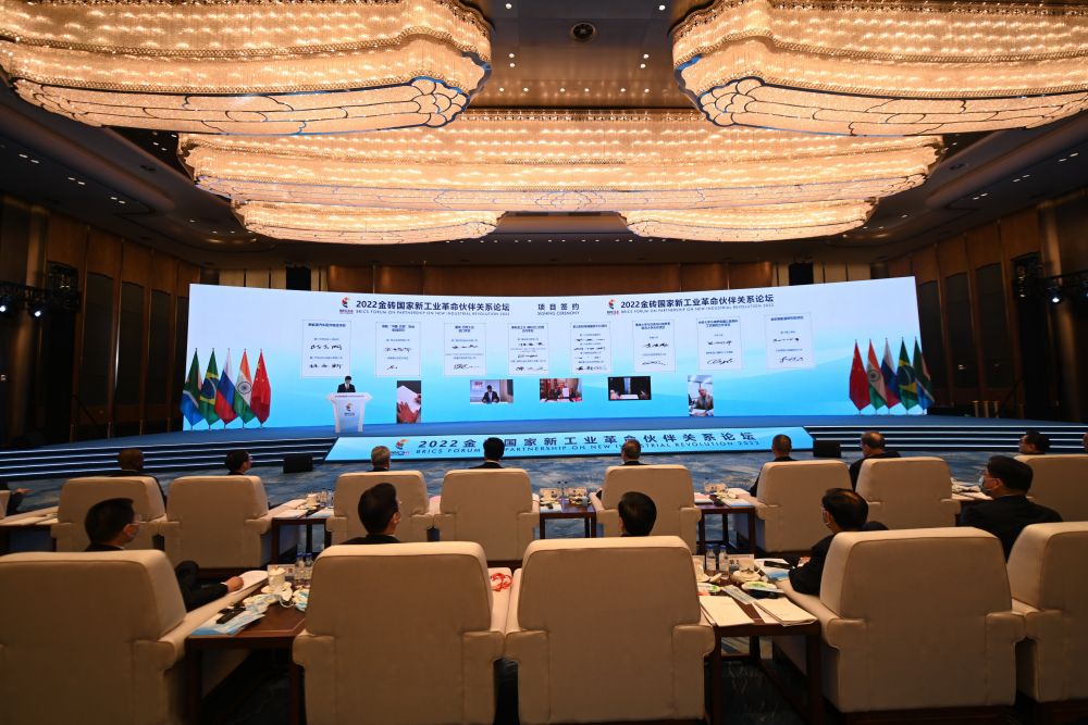這是2022年9月7日拍攝的金磚國(guó)家新工業(yè)革命伙伴關(guān)系創(chuàng)新基地項(xiàng)目簽約儀式現(xiàn)場(chǎng)。新華社記者林善傳攝