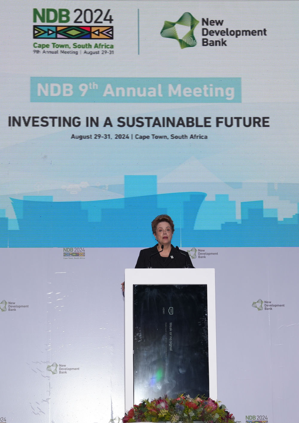 8月30日,在南非開普敦,新開發(fā)銀行行長(zhǎng)羅塞芙在該行第九屆理事會(huì)年會(huì)開幕式上致辭。新華社記者王雷攝