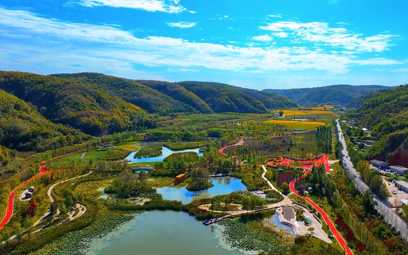 環(huán)境越變越好,日子越過越舒心?!吧鷳B(tài)紅利”惠及了濕地公園不遠處的桃寶峪村。
