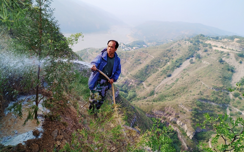 這支隊伍平均年齡超過45歲。從2004年至今的20年間,植樹攔泥沙、造林保水土,他們在宜川縣種下近4萬畝、280多萬棵樹,為宜川縣境內(nèi)黃河沿岸石質(zhì)山地披上了3.7萬畝“綠裝”。