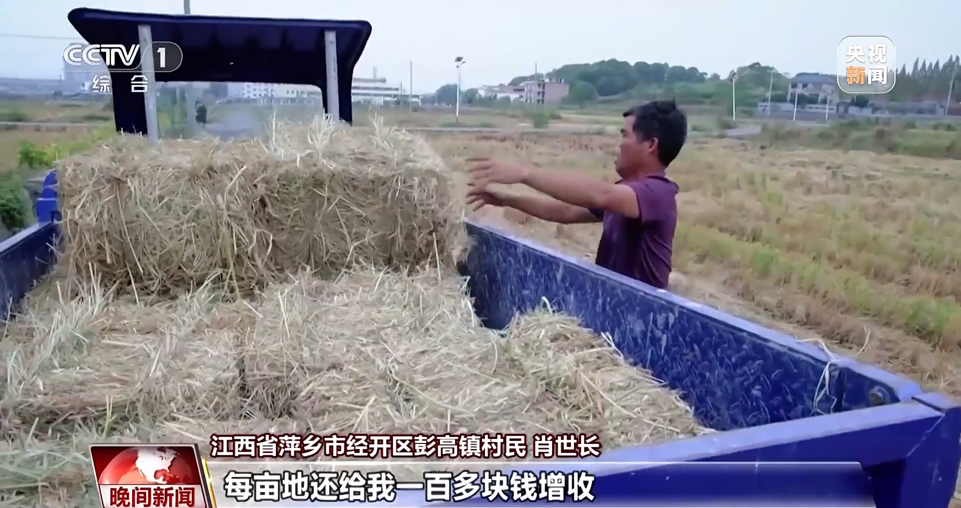 江西省萍鄉(xiāng)市經(jīng)開(kāi)區(qū)彭高鎮(zhèn)村民 肖世長(zhǎng):秸稈處理很麻煩,運(yùn)走還需要自己額外花錢(qián)請(qǐng)人過(guò)來(lái)幫忙。現(xiàn)在他們上門(mén)回收,每畝地還給我一百多塊錢(qián)增收。