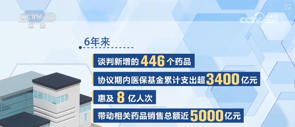 特點(diǎn)三,減輕負(fù)擔(dān)。通過醫(yī)保的“團(tuán)購”,很多“貴族藥”開出了“平民價(jià)”。2023年,通過談判新增進(jìn)入醫(yī)保目錄的105個(gè)藥品,2024年前三季度惠及797.8萬人次,9月份藥品銷售額是1月份的七倍。6年來,談判新增的446個(gè)藥品,協(xié)議期內(nèi)醫(yī)保基金累計(jì)支出超3400億元,惠及8億人次,帶動相關(guān)藥品銷售總額近5000億元。疊加談判降價(jià)和醫(yī)保報(bào)銷等多重因素,累計(jì)為群眾減負(fù)超過了8000億元。