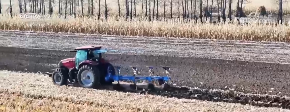從空中看去,未收獲的地方是呈現(xiàn)金色,收割后的地面,大型的翻地機(jī)跟在后面將秸稈直接翻入地下,翻地車一過就露出油汪汪的黑土地了。這些翻完的地之后還要耙平、起壟,這樣第二年開春可以直接種植了。記者在當(dāng)?shù)夭稍L期間,看到了這些農(nóng)戶幾乎是24小時(shí)晝夜不停在進(jìn)行收割和秋整地,可以說是“人歇機(jī)器不歇”,在搶抓農(nóng)時(shí),當(dāng)?shù)赜芯湓捊小敖鹕x田、黑色越冬”。