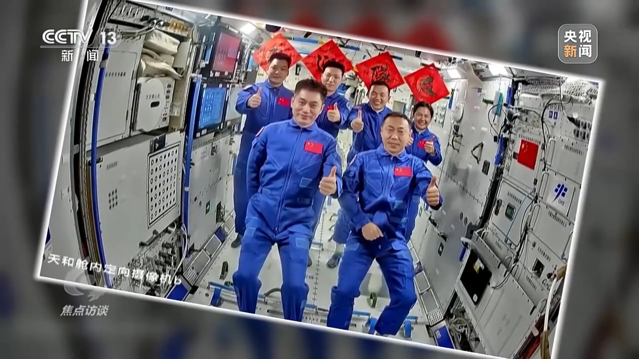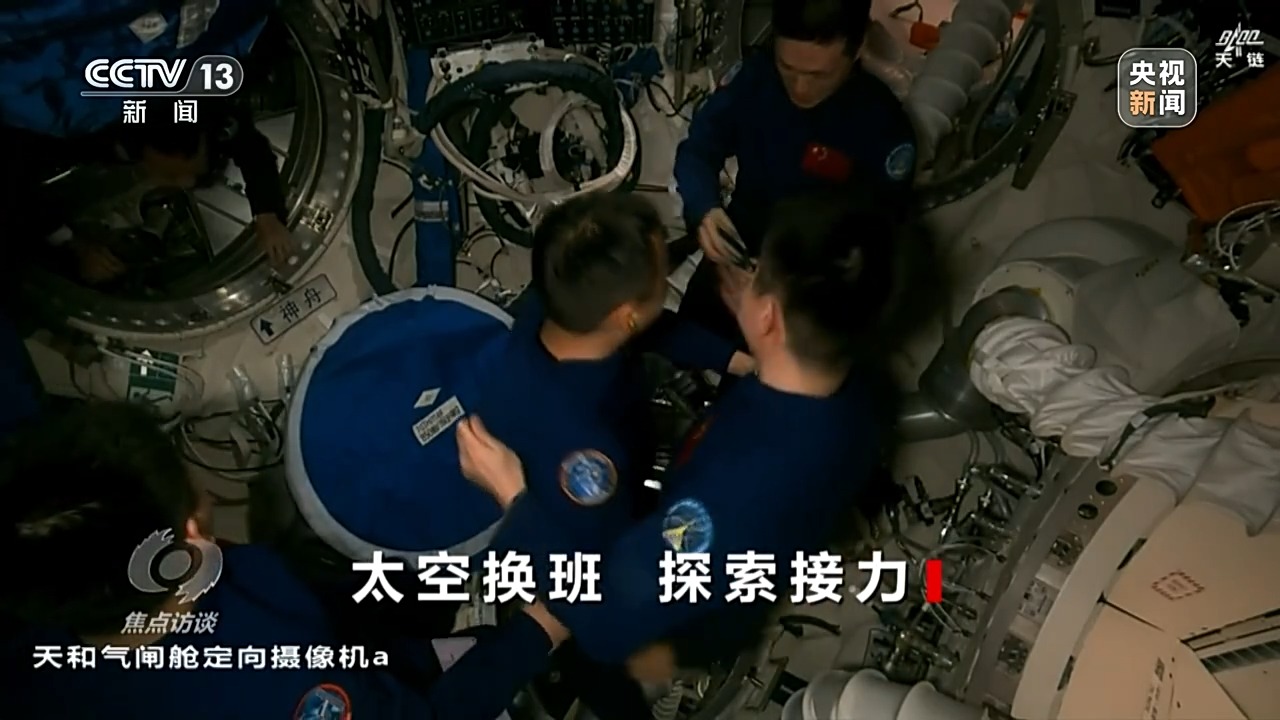 重返中國(guó)空間站的神十九航天員蔡旭哲打開(kāi)艙門,再次體驗(yàn)失重,他輕松地就從飛船進(jìn)入空間站節(jié)點(diǎn)艙,和等待他們到來(lái)的神十八乘組來(lái)了一個(gè)大擁抱。第一次進(jìn)入空間站的兩位“90后”航天員也同樣受到了熱烈的歡迎。在打掃一新的空間站核心艙,歡迎儀式必不可少。