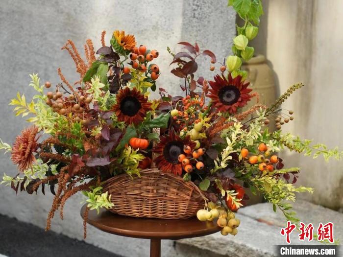 花藝師根據(jù)“撿秋”靈感制作的花束。(受訪(fǎng)者供圖)