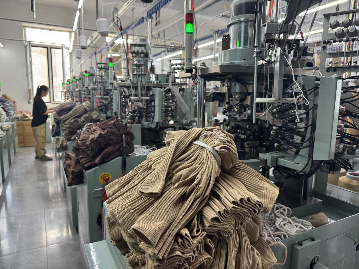 當(dāng)前,小北河鎮(zhèn)的一些襪企不斷加大投入“智改數(shù)轉(zhuǎn)”,正逐步從4代電腦機向5代智能機升級,全新的產(chǎn)業(yè)活力不斷釋放。澳笠森襪業(yè)的生產(chǎn)車間里,織襪工人龐大姐把生產(chǎn)好的襪子整理好拿到成品區(qū):“不到3分鐘,就能織出一雙棉襪,我一個人能管十幾臺機器。”