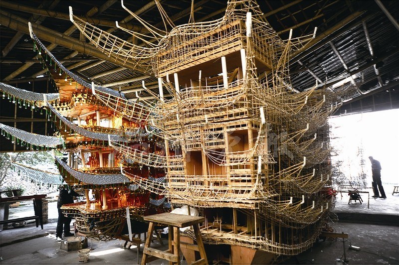 做“首飾龍”的匠人,沒有圖紙,全憑師傅一生的經(jīng)驗(yàn)來規(guī)劃不同船型和運(yùn)動(dòng)方式。林順奎制作的首飾龍身上有大大小小80多個(gè)樓閣、亭臺(tái),濃縮了《封神榜》《西游記》等80多出戲,有近300個(gè)形態(tài)各異、從事各行各業(yè)的古今人物。