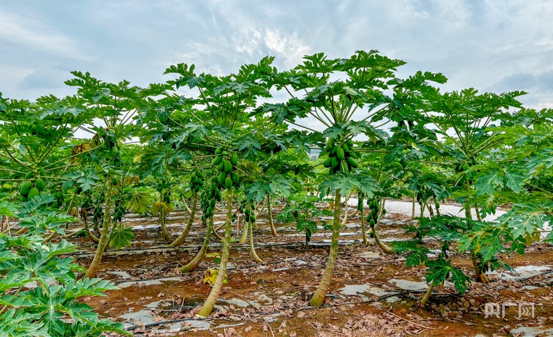 “木瓜營養(yǎng)價值高、口感特別、用途也很廣,可以制成木瓜絲、醬菜、木瓜酵素等等,有很好的市場前景?!睆V西農(nóng)墾明陽農(nóng)場公司相關(guān)負責(zé)人鄒優(yōu)君介紹,公司也帶領(lǐng)農(nóng)民參與木瓜種植,免費向基地農(nóng)戶提供技術(shù)指導(dǎo)和技術(shù)培訓(xùn)服務(wù),并按訂單回收。當前,已輻射帶動周邊村民種植木瓜近3000畝。
