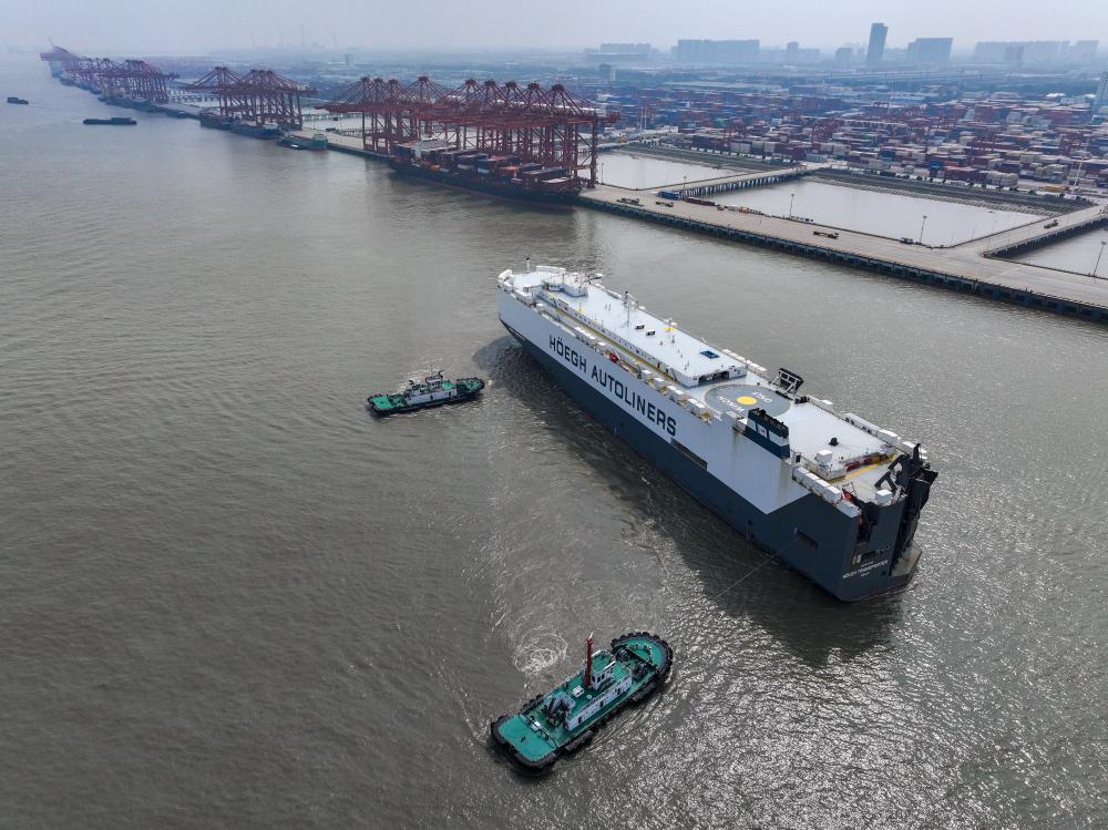 在太倉(cāng)港區(qū)的海通(太倉(cāng))汽車碼頭堆場(chǎng),一眼望不到頭的汽車方陣蔚為壯觀,數(shù)萬(wàn)輛汽車在此集港,整裝待發(fā),將運(yùn)往世界各地。借助中國(guó)新能源汽車出海的東風(fēng),打造汽車江海聯(lián)運(yùn)物流基地,是太倉(cāng)向“物貿(mào)港”轉(zhuǎn)型的重要抓手之一。