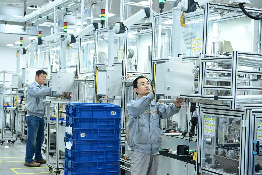 在江蘇省太倉(cāng)港經(jīng)濟(jì)技術(shù)開發(fā)區(qū)博馬(蘇州)控股有限公司,生產(chǎn)技術(shù)人員在生產(chǎn)汽車渦輪增壓器產(chǎn)品(6月19日攝)。新華社發(fā)(計(jì)海新 攝)