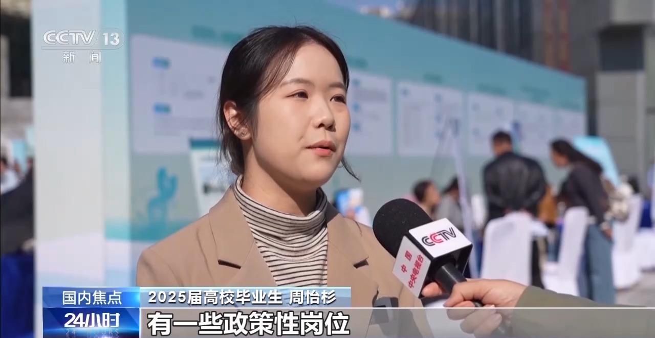 2025屆高校畢業(yè)生 周怡杉:我們還跟學(xué)院的老師了解到有一些政策性崗位,比如說常見的“三支一扶”“西部計(jì)劃”,我自己也是想要嘗試的。因?yàn)槲矣X得我們現(xiàn)在就業(yè)不一定非常瞄準(zhǔn)北上廣深這些大城市,我們先下基層鍛煉幾年,我覺得也是很好的。