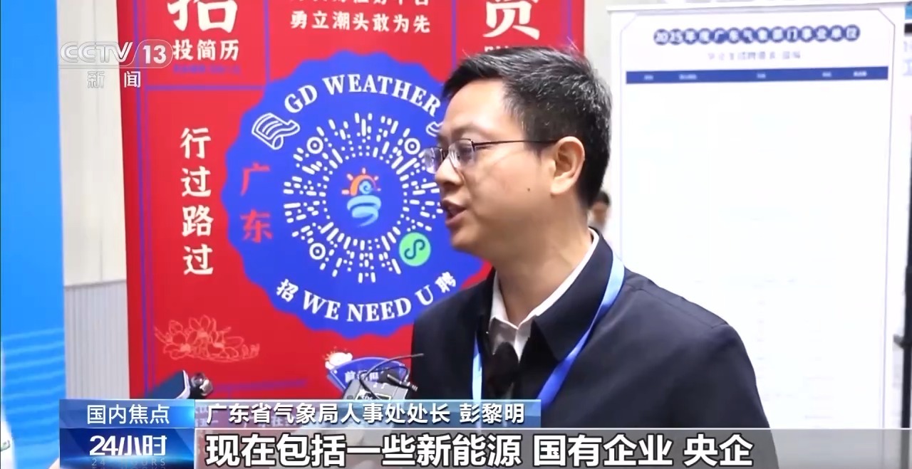 廣東省氣象局人事處處長 彭黎明:氣象類的適應(yīng)面很廣,除了我們氣象部門的就業(yè)需求,現(xiàn)在包括一些新能源、國有企業(yè),央企,他們也很熱門去招收大氣科學(xué)的碩士及以上的畢業(yè)生。