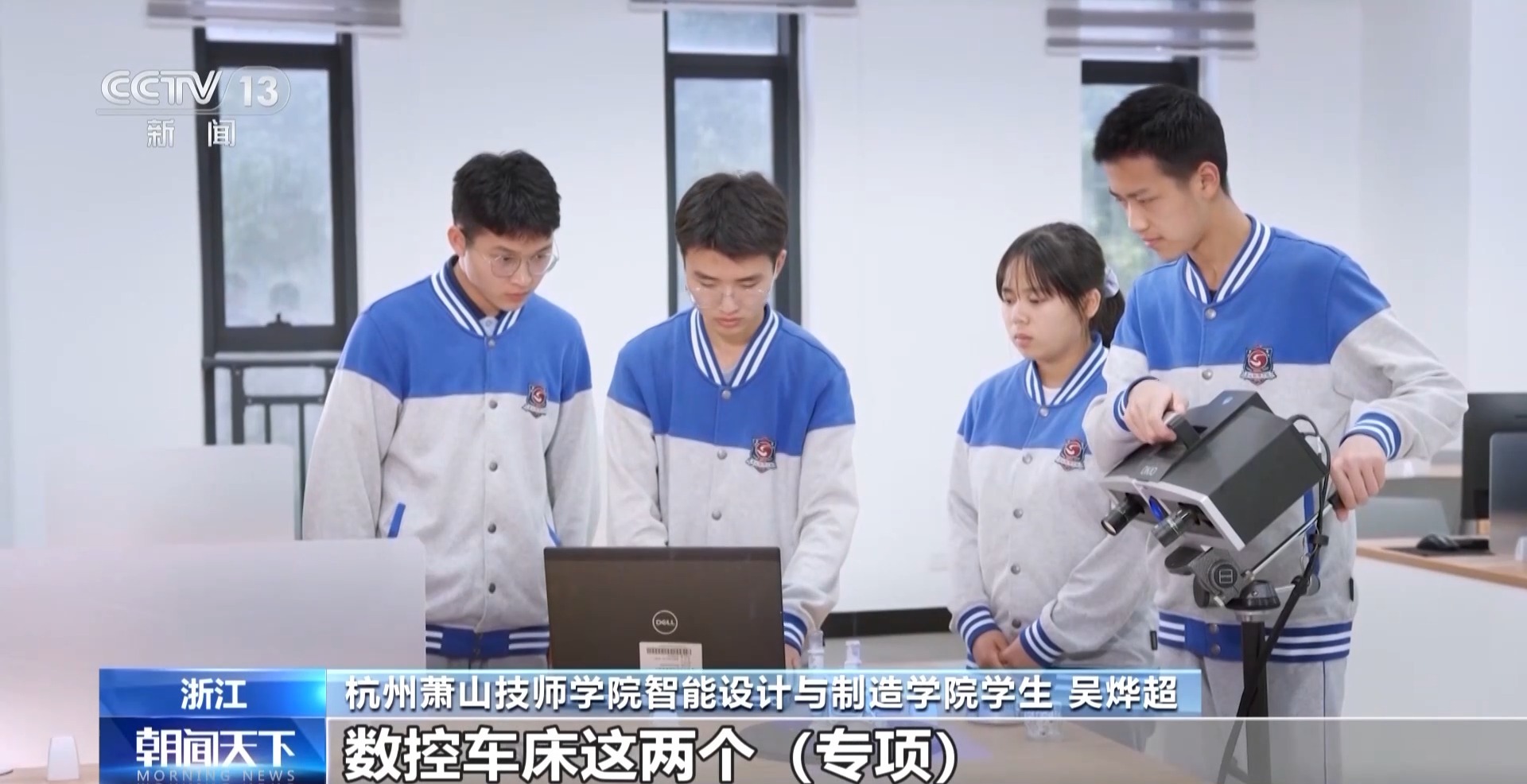 在杭州蕭山技師學(xué)院的多軸加工教學(xué)工作站里,學(xué)生們正在進(jìn)行實(shí)操訓(xùn)練。體積最大的這臺(tái)叫五軸加工中心,專門用于加工航天裝備、精密器械的復(fù)雜曲面。一些學(xué)生告訴記者,像這樣的大家伙,這兩年學(xué)校沒少添置。